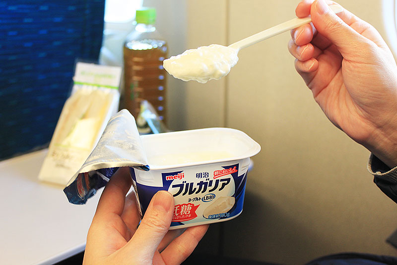 さらに、仕事が動き出し、早朝からの出張も増えると、駅構内のコンビニでヨーグルトとおにぎり1個を買って、たとえば東京駅を出てすぐヨーグルトを食べて、名古屋へ着く手前で おにぎり を1個食べると、昼過ぎまで空腹感もなく過ごせる。