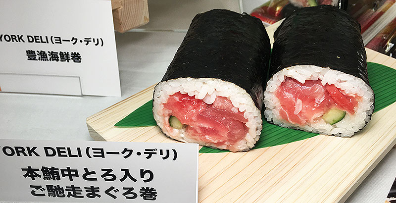 YORK DELI(ヨーク・デリ)本鮪中とろ入りご馳走まぐろ巻(1,490円)は、本マグロ中トロ、メバチマグロ、マグロのたたきを贅沢に巻き上げたひとしな。