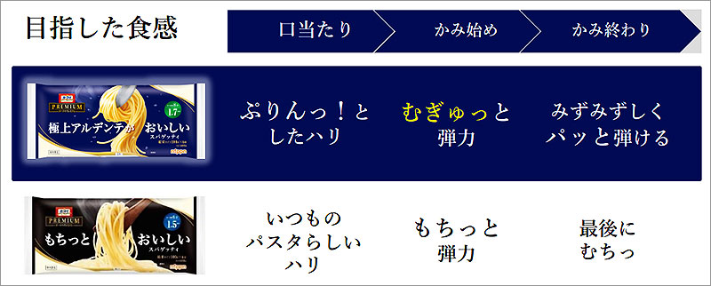 ◆「もちっと」食感に次ぐ人気の「しっかり」食感。「しっかり」食感派が好むアルデンテ食感を追求