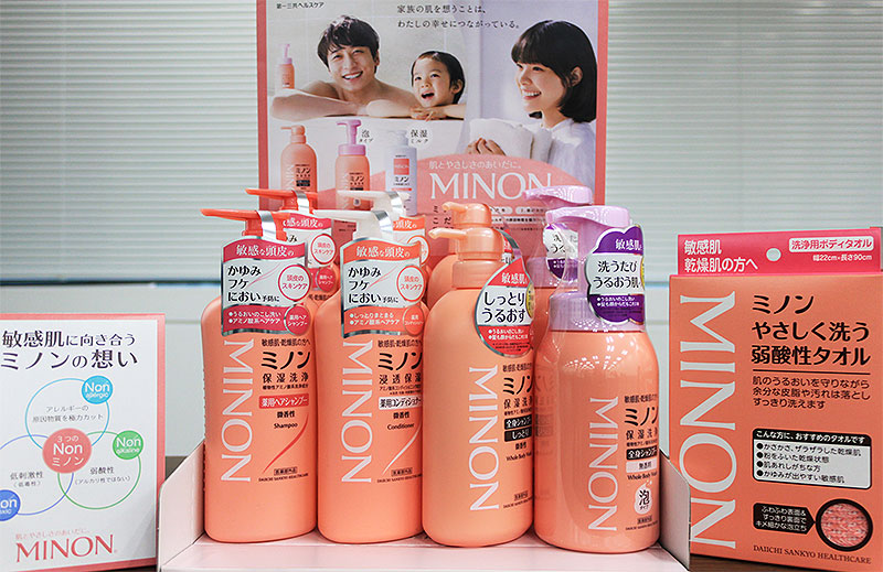 第一三共ヘルスケアは「抗がん剤治療中から取り入れたいスキンケア」「術後、抗がん剤治療中・後の悩み対策」と題したがん患者向けセミナーを開き、敏感肌向け「ミノン」などを使ったスキンケア・セルフケアのポイントを説明した。