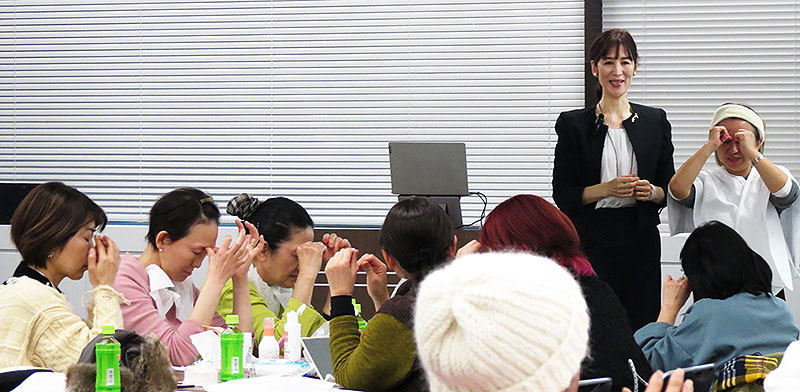 行政や医療機関と連携し、がん治療による副作用で脱毛や爪の変色、肌のくすみなどの悩みに向き合い、治療生活の質を高めるべく活動するアピアランス・サポート東京の 村橋紀有子 室長は、医学的根拠にもとづいた安全かつ効果的な巡活マッサージを伝授。