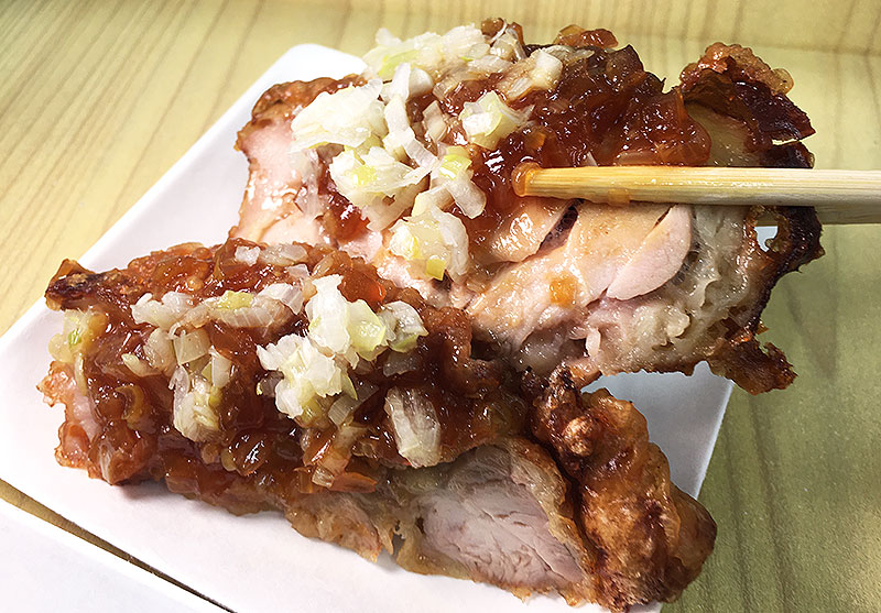 酸味のバランスが絶妙な油淋鶏ソースには、新鮮なネギをたっぷり使ってシャキシャキ感をアップ。