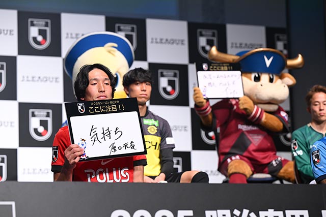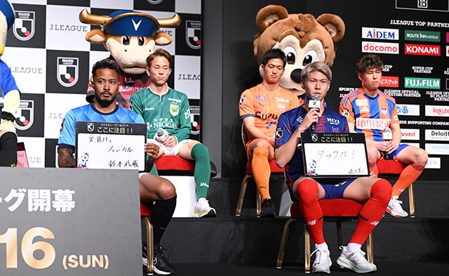 野々村 Chmn のそんな意気込みから始まった 2025Jリーグ開幕イベントには、鹿島アントラーズ 濃野 公人/アルビレックス新潟 谷口 海斗/浦和レッズ 原口 元気/清水エスパルス 北川 航也/柏レイソル 古賀 太陽/名古屋グランパス 永井 謙佑/FC 東京 橋本 拳人/京都サンガ F.C. 福田 心之助/東京ヴェルディ 森田 晃樹/ガンバ大阪 名和田 我空/FC 町田ゼルビア 谷 晃生/セレッソ大阪 登里 享平/川崎フロンターレ ふろん太/ヴィッセル神戸 モーヴィ/横浜F・マリノス マリノス君/ファジアーノ岡山 江坂 任/横浜 FC 鈴木 武蔵/サンフレッチェ広島 サンチェ/湘南ベルマーレ 鈴木 章斗/アビスパ福岡 金森 健志らが登場。