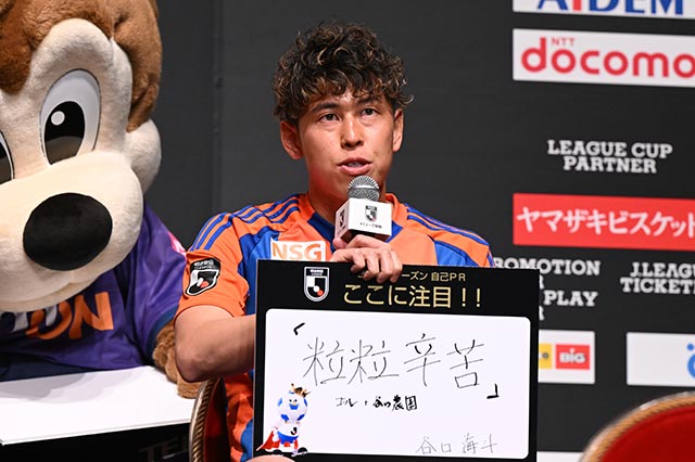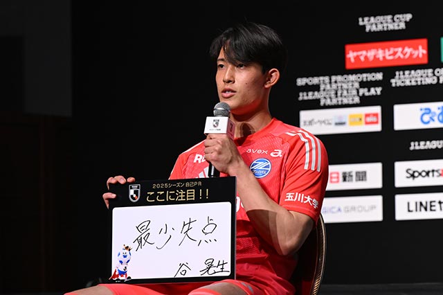 「爪を伸ばしてシュートを止めます。エルフさん、パンサーさんといっしょにJリーグギャル化をして、ここに来ている選手やクラブが 2025 年Jリーグ盛り上げていけたらなと思うのでみんな“アゲ”でお願いします」(FC町田ゼルビア・谷)