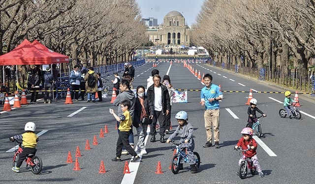 ここで国内最高峰の自転車ロードレースツアー「Jプロツアー」の公式レース「第1回東京クリテリウム」が行われ、レース会場のまわりでは、「弱虫ペダルドリームレース」、誰でも参加できる「パレードラン」、人気コミック「弱虫ペダル」の渡辺航先生(著者)サイン会、30分で自転車に乗れるようになるキッズ向け「へんしんバイク」などで、“自転車乗れない人も楽しめるフェス”に。