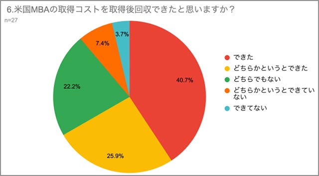 全体的にはMBA取得が収入増加やキャリア向上に貢献する投資として評価されていた。