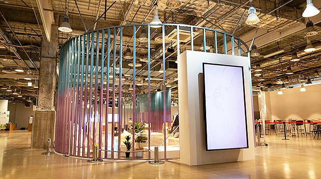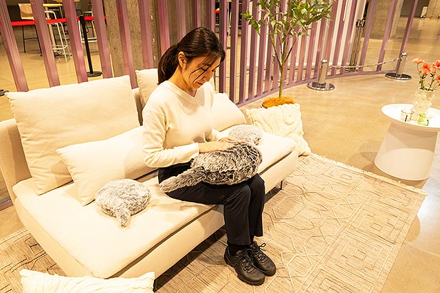 未来のリビングルームを体感できる展示空間で、心も身体ものんびり、ゆったりと過ごすアート鑑賞を体験。