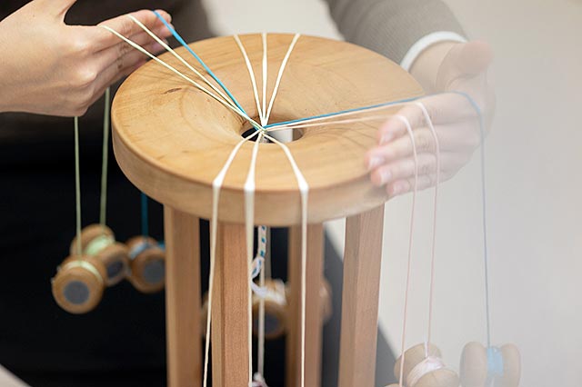 龍工房 ミニ丸台で組む組紐体験〜紅染めの絹糸を組み上げる〜