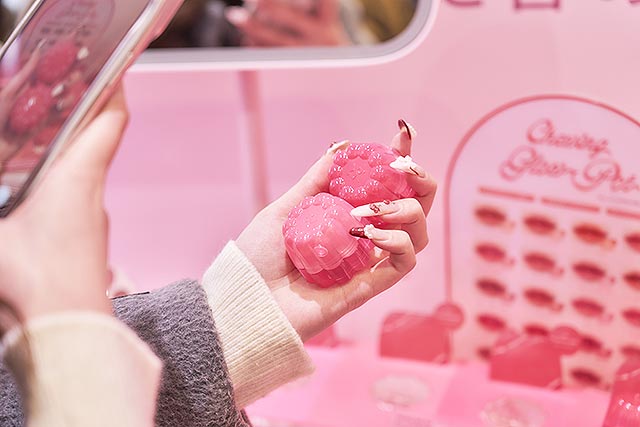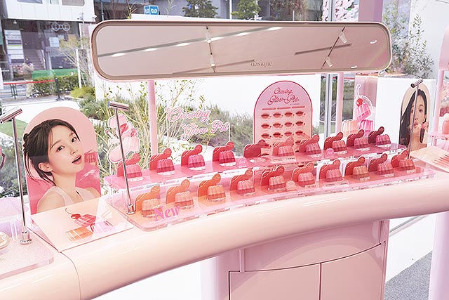 さらに、店内もやわらかなピンクの光に包まれた空間が広がって、2025 年春限定「ピンクブロッサムコレクション」限定色や、日本初上陸の新作「プローカバーデュアルコンシーラーパレット」「チューインググロウポット」とか、「dasique」のたくさんの商品がそろう、まさに夢のような空間!