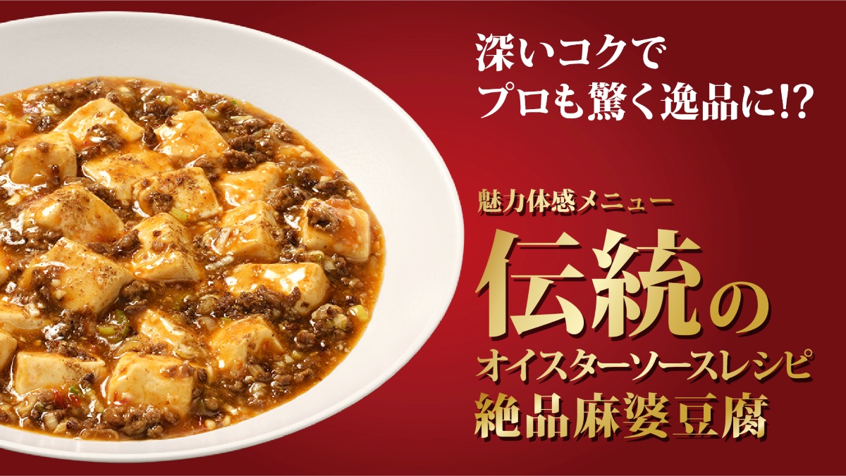 オイスターソースを使用した「絶品麻婆豆腐」「コク旨うどん」の2つのメニューを試食。※試食は無くなり次第終了