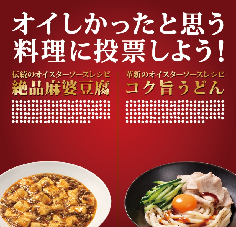 李錦記のオイスターソースを使った伝統的料理「絶品麻婆豆腐」と、オイスターソースのコクをダイレクトに楽しめる革新的料理「コク旨うどん」が食べ比べできる試食を提供し、“伝統”と“革新”、どちらの魅力のトリコになるか、来場者の投票によって決める体験型のイベントだという。