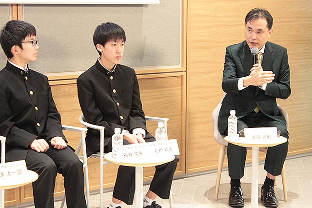 また、国立 沼津工業高等専門学校 化学専攻、静岡県立 焼津中央高校 科学部 の生徒・学生たちと、「仲間を集めて冒険の旅に出よう!」~高専生・高校生とともに研究の取り組み方によって広がる未来について語る~と題したトークも展開。次の5テーマについて、語り合った。