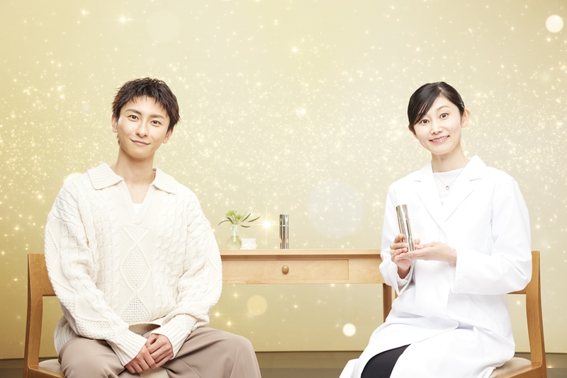 スペシャル対談では、與真司郎が大正製薬の先端皮膚科学研究者と「BEAUTY」「SCIENCE」「LIFE STYLE」の3つをテーマに対談。與さんは旅の様子や生き方、スキンケアやファーストエイジングケア※1など美について語っている。
