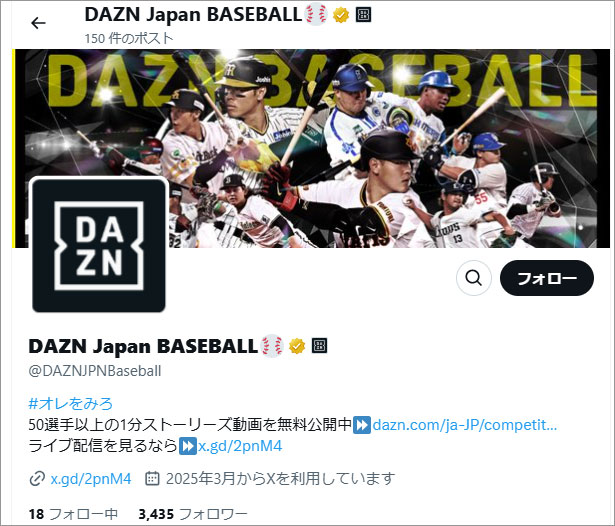 さらに、今シーズンから野球コンテンツ専門 公式 Xアカウント『DAZN Japan BASEBALL』(@DAZNJPNBaseball)を開設。