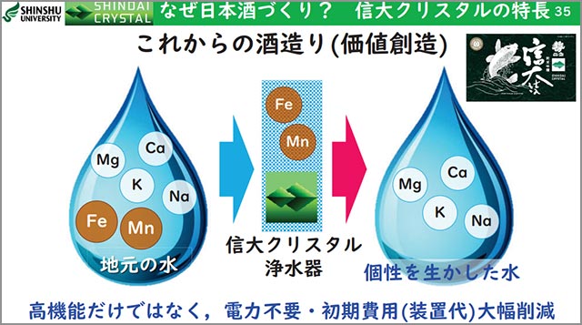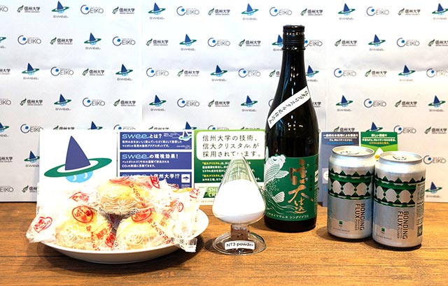 信州大学が開発した信大クリスタルによるきれいでおいしい水は、地元酒蔵と手を組み、飲料水から日本酒まで、さまざまなブランドが“オール信州”で横展開・進化・深化していく。