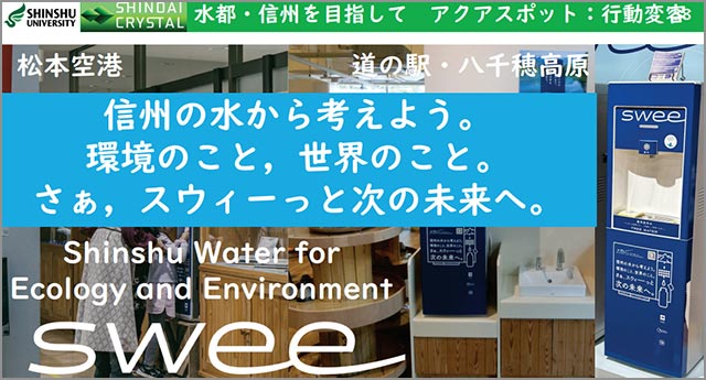 エイコーと信州大学はさらに、共同開発したウォーターサーバー「swee」(Shinshu Water for Ecology and Environment)を本格的に全国展開。