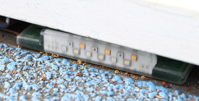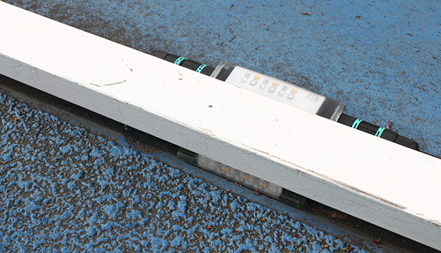 画像では、トラックと芝の境界部分(地面縁石部分)に、LED が光っているのがわかる。
