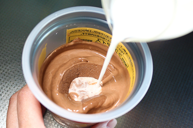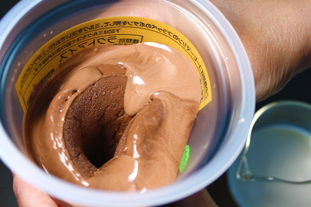 2層を混ぜ合わせることで、チョコソースのなめらかさとチョコレートアイスのさっぱり感を同時に楽しめちゃうってわけ。
