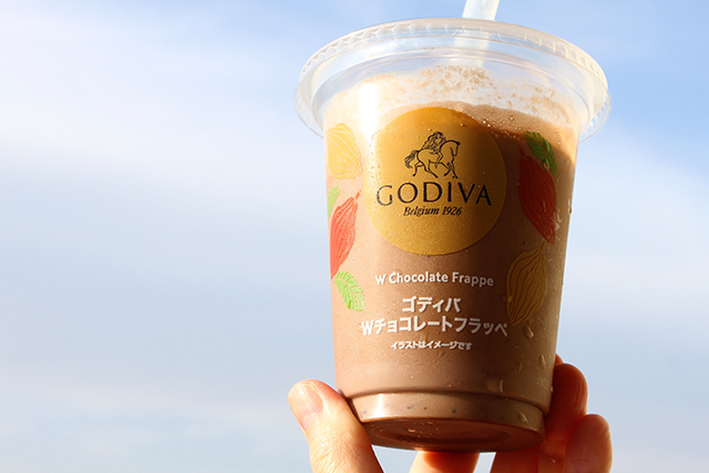 「ゴディバWチョコレートフラッペ」には、とろけるようなチョコソースが新たに加わって、そのシアワセ感がさらにアップ。いいわこれ。