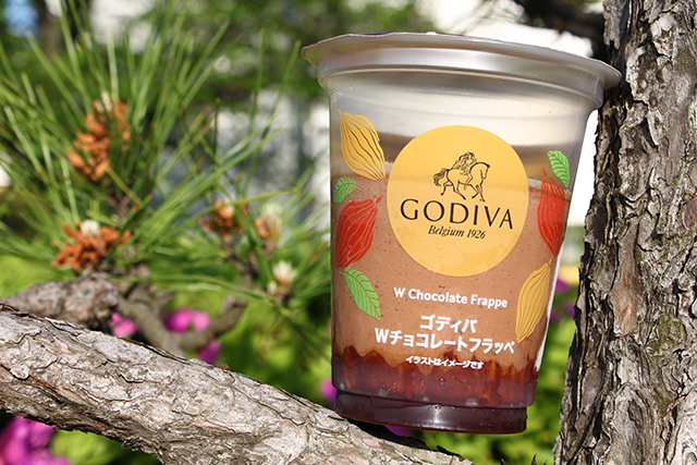ファミリーマート「ゴディバWチョコレートフラッペ」(498円)は、チョコソースと、チョコレートアイスにチョコチップを混ぜ合わせた2層仕立てで、贅沢にチョコレートが味わえるフラッペ。