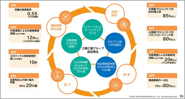 三機工業はさらに、持続的な成長を図る上で、8つの KPI を新たに設定し、企業価値向上を目指していくという。