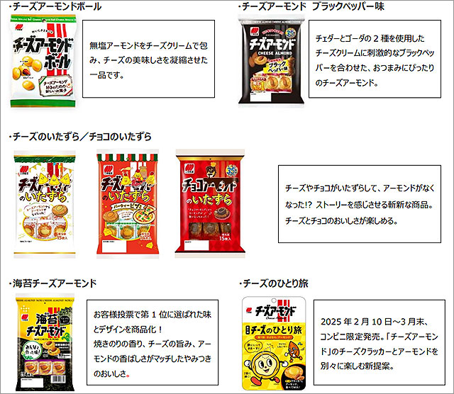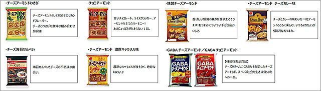 そうした変化に応えるかたちで、チーズアーモンドの魅力をさらに磨くべく、味覚や機能性、嗜好の多様化に応えるラインナップを次々と開発・発売。