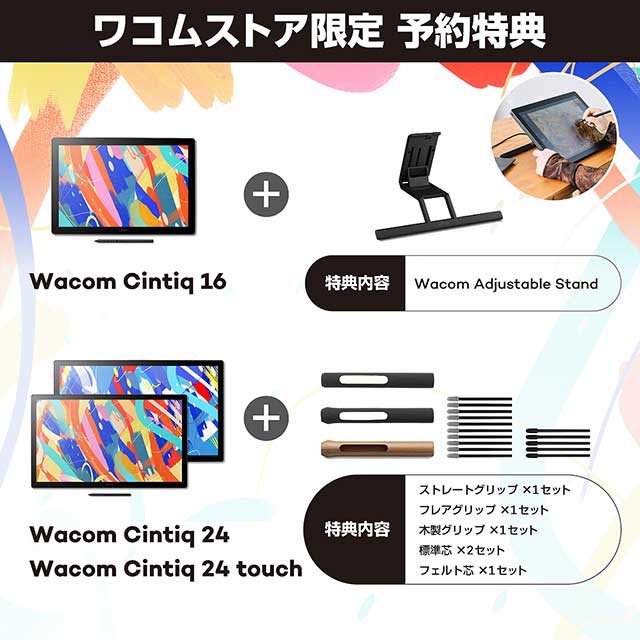 ◆Wacom Cintiq 24/24 touch:ワコムストア予約で Wacom Pro Pen 3ストレートグリップ 1セット+フレアグリップ 1セット+木製グリップ 1セット+標準芯 2セット+フェルト芯 1セット をプレゼント