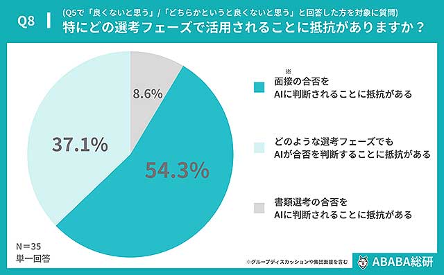 「どのような選考フェーズでもAIが合否を判断することに抵抗がある」が37.1%だった。