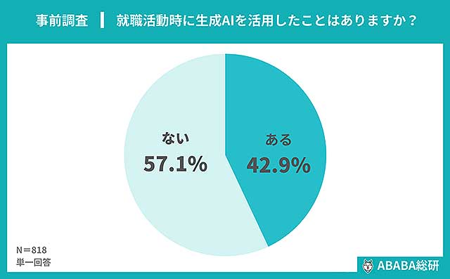 2026年3月卒業予定の就活生818人のうち、活用したことがあると回答した就活生は42.9%と半数近くに上った。