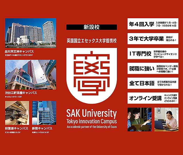 いよいよ開校した英国国立エセックス大学公認 国際教育提携校 SAK University東京イノベーションキャンパスの詳細、オープンキャンパス情報は、公式サイトをチェック↓↓↓