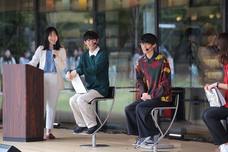 さらに、東問は自分たちの会社で、ペットボトルのキャップを集める活動や、リサイクルに力を入れていることを紹介し、「こういうイベントでサステナブルについて考えることも大事だけど、日々の生活の中で考えていくことが大切。考えることをやめないでほしい」と客席に呼びかけた。