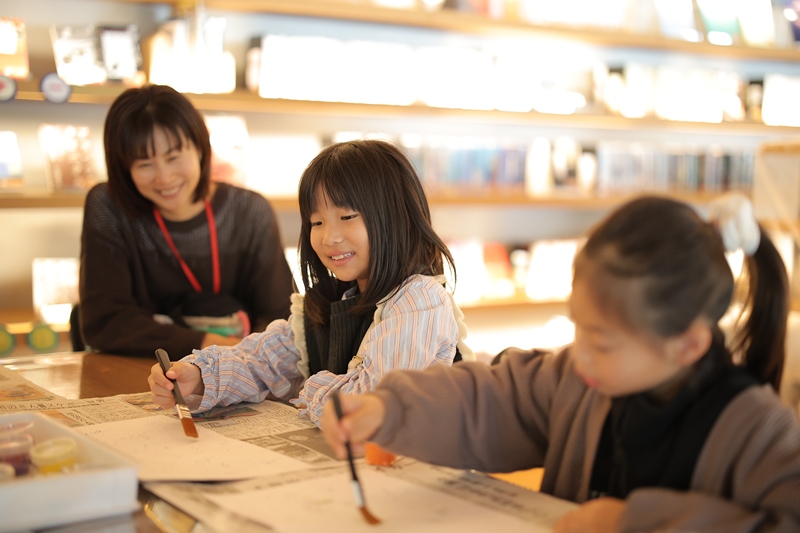 マニラ麻や竹などの植物を原料とした和紙を使用し、太陽光で充電して発光するオリジナルのソーラーランタンを作りができる「ソーラーランタンづくり体験」では、小学生や未就学児のいる家族が多く参加し、子どもたちはシェードとなる和紙に特殊な顔料の粉をふりかけ、自分でデザインを作成し、アイロンをかけて熱で色を紙に染め付ける作業に熱中した。