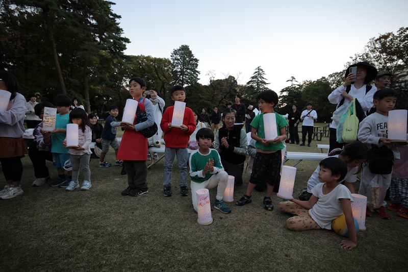日が暮れてくると、ソーラーランタンの点灯式を実施。時間になるとイベントで作ったソーラーランタンが芝に並び、一斉に点灯。点灯すると参加者である子どもたちがそれぞれランタンを手に持ち、家族で記念写真を撮る微笑ましいシーンも。