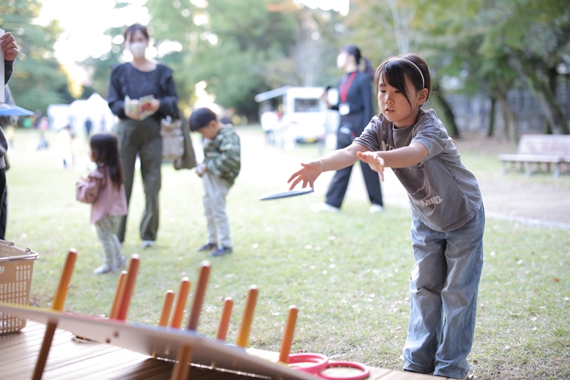 MUFG PARK内の、各箇所で出題されるクイズに挑戦し、スタンプを集めていく「サステナ発見! スタンプラリー」や、未就学児のお子さんでもクイズゲームに挑戦し、サステナブルについて楽しく学びながら、プレゼントがもらえる「クイズ輪投げチャレンジ」、伐採した樹木を使って世界にひとつだけのスプーンを作れるワークショップや、ドリンクパックの採用など環境負荷を抑える工夫を凝らし、地元の食材を使った美味しいメニューを提供するキッチンカーの設置、野菜やシャインマスカットといった、地産地消のものを販売するマルシェなど、子どもだけでなく親子で楽しめるコンテンツが豊富に用意された。