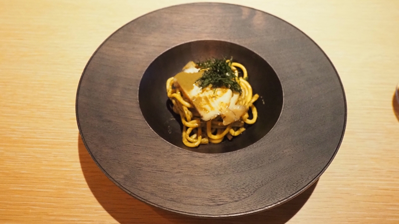 試食会ではそんな「ほうちょう」をパスタ風にアレンジし、贅沢に鮑の肝を使用。"おおイタリアン" とでも言うべきだろうか。