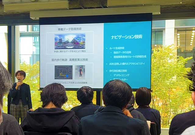 予定している実証内容:cmオーダーでの空間認識トラッキング技術を活用した、屋内の特定施設における視覚障がい者向けの誘導及び情報保証の取り組みを行う。中期的には、トラッキング技術を屋外にも活用することで、視覚障がい者の街中での移動を自立的かつ安心なものにするための環境整備を行う。