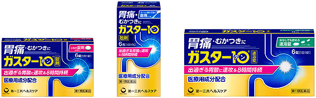 「ガスター10」(第一三共ヘルスケア)は、胃痛、もたれ、胸やけ、むかつきにすぐれた効果を発揮する H2ブロッカー胃腸薬で、発売29年目を迎えた今年、パッケージをリニューアル。