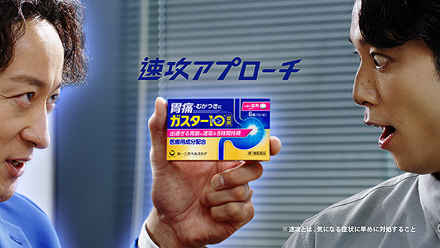 これぞ、「ガスター10」8年ぶりの新TV-CM「胃痛だ!今だ!(プレゼン準備)」篇。