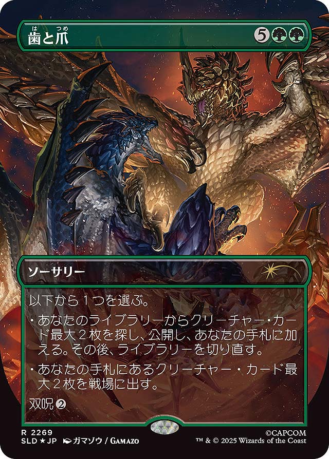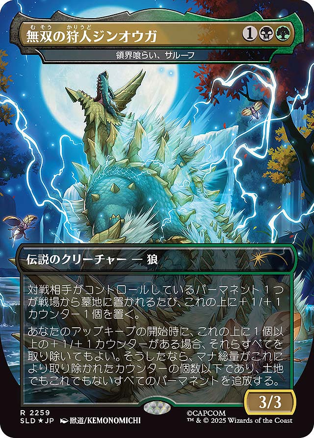 モンハンの世界がマジックの Secret Lair Superdrop として登場し、人気のモンスターであるリオレウス、ネルギガンテ、ジンオウガをはじめ、作品の魅力である「狩猟」の迫力をカード上で表現。