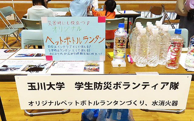 「当初は放水、AED、消火器などの体験をメインにと考えていましたが、せっかく玉川大学として参加するので、教育機関らしいことができないかと考え、光の乱反射を利用したペットボトルランタンを作ることに決めました」