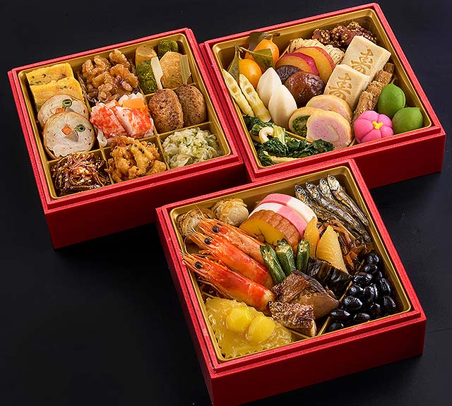 内容 : 伝統の技と現代の感性が融合した、日本橋OIKAWAの誇り高き和風おせち三段重。それぞれのお重毎にテーマに沿った献立で、お正月の食卓を華やかに演出します。