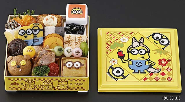 内容 : 2024年の大ヒット映画『怪盗グルーのミニオン超変身』で大人気”ミニオン”がおせちで登場!本格的な和のおせちにハチャメチャなミニオンたちがいっぱい!ミニオンと一緒に家族で楽しく新年をお祝い!