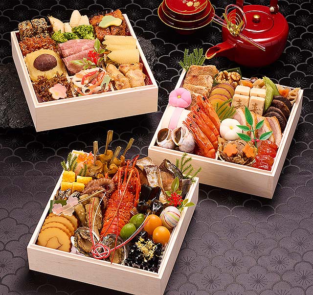 内容 : 和の重を丸の内「しち十二候」齋藤料理長、洋の重を恵比寿「ロジエ」金子シェフ、中華の重を神楽坂「ENGINE」松下シェフが監修。食材の魅力がたっぷり味わえるおせちです。