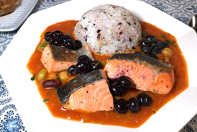 サーモンと大豆のブルーベリーカレー