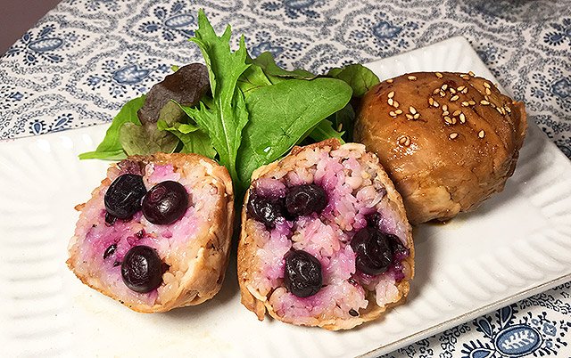 肉巻きブルーベリーもち麦おにぎり