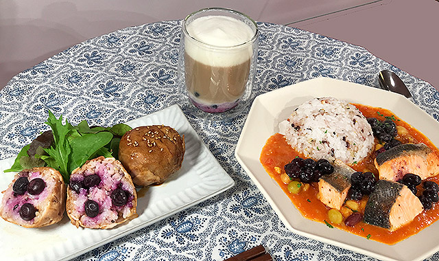 ブルーベリーが豊富に含むポリフェノール(クロロゲン酸)と食物繊維、また豚肉ともち米に含まれるビタミンB群はダイエットや体脂肪燃焼、糖質代謝へ作用し、健康的な体作りが期待できるレシピです」(清水RD)