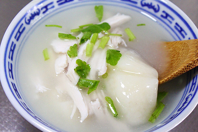 夕飯前に小腹が空いたとき、夜食で何か食べたいと思ったとき、カロリーは摂りすぎたくないけど、ほどよく満足したいとき、鶏餅湯(ジーモアチータン)つくってみて!