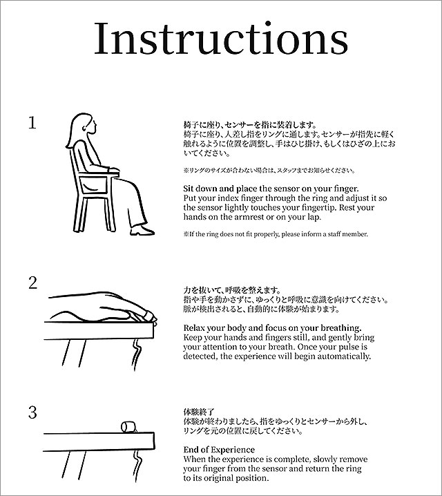 視覚や言葉に頼らず、触れ合いと生体反応を通じて、感情的なつながりや共鳴を体感できる新しいアートが、ここで体感できる。