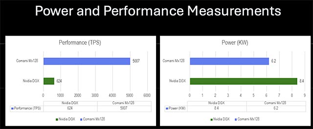ベクターHD が導入する 米 Cornami 社製「次世代型高性能サーバー」は、同社独自の 非ノイマン型・大規模並列処理・拡張可能アーキテクチャにより、大規模言語モデル(LLM)の処理において、NVIDIAH100ベースのサーバーと比較して、ワットあたり桁違いに高い性能を発揮するとの評価が示されている。