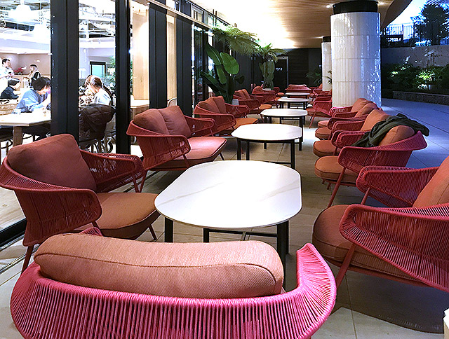 代々木公園を望む約140席のパークフロント大型レストランでは、ハワイのシグニチャーディッシュに加えて、日本の食材や技法も取り入れた、ここでしか味わえないクリエイティブなパシフィック・リム料理を体感できる。